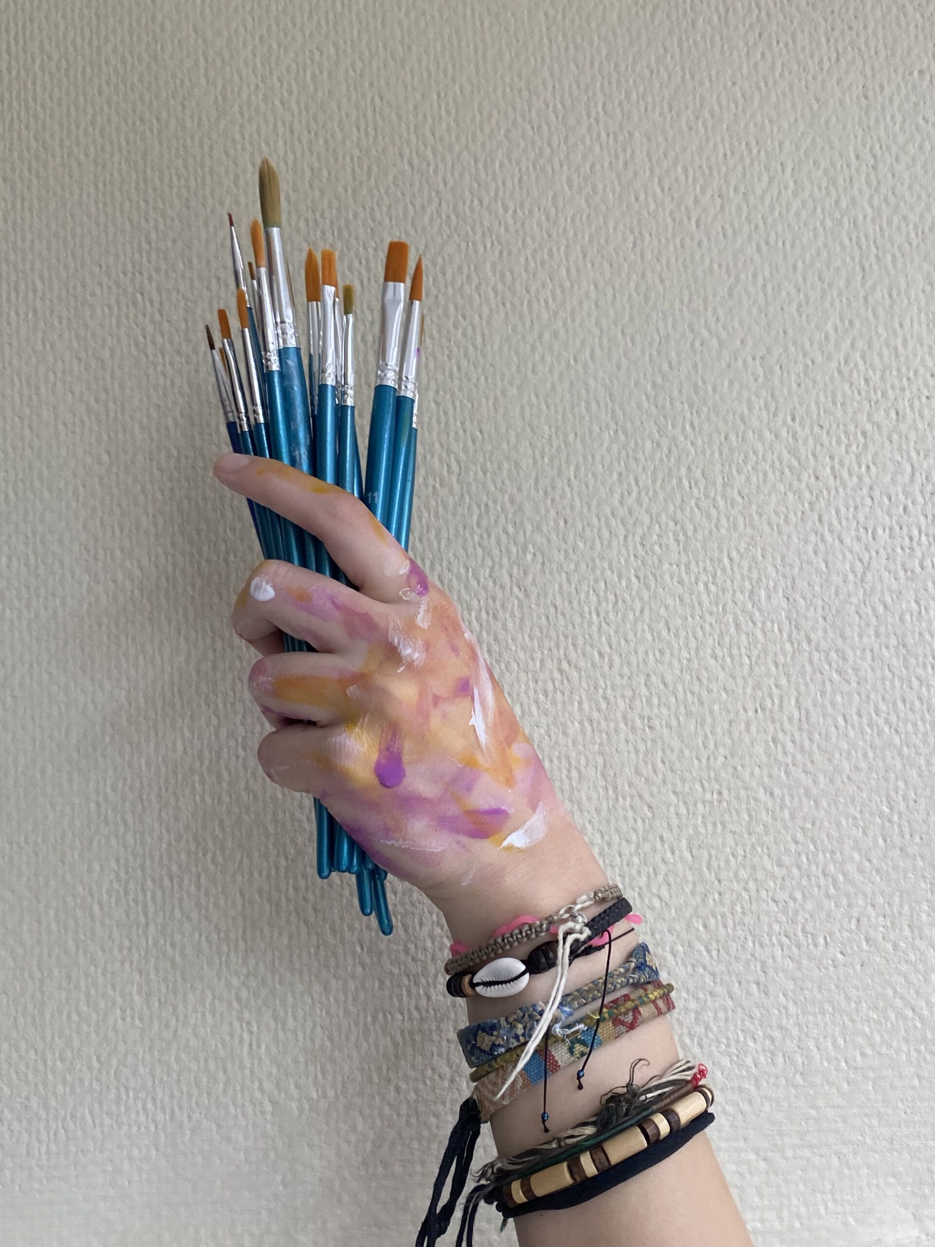 Ik gebruik textielverf van het merk Basic.